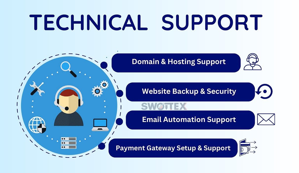Technical support (website domain, hosting, email automation, website backup, payment gateway setup)
